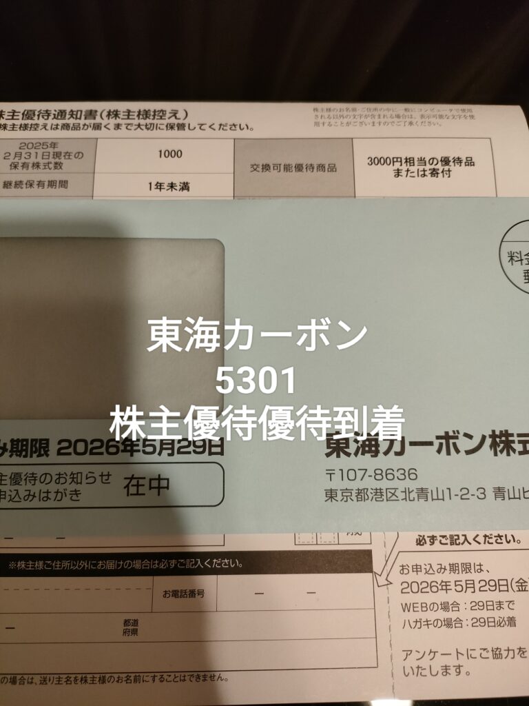 ■ 東海カーボン(5301)の株主優待とは 東海カーボンの株主優待は、保有株数に応じて内容が変わるタイプです。 100株から優待がもらえ、株数と保有年数が増えるほど選べる内容が増えます。 長期株主にも配慮した内容ですね。 ■ 株数に応じた優待内容(最新... -