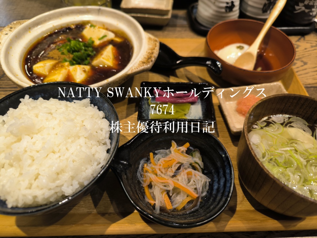 【2026年】NATTY SWANKYナッティースワンキー(7674)の株主優待を使ってランチ|肉汁餃子のダンダダン麻婆豆腐定食を食べてきました│使い方・到着日・利回り・内容まとめ
