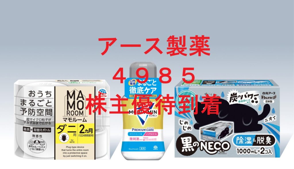 アース製薬(4985)の株主優待が2026年3月に到着しました。 100株で届くのは、マモルームやモンダミン、除湿剤など 日常生活でそのまま使える実用的な日用品セット です。 この記事では、 優待の内容・到着日・各商品の簡単レビュー・優待価値・過去の到着... -