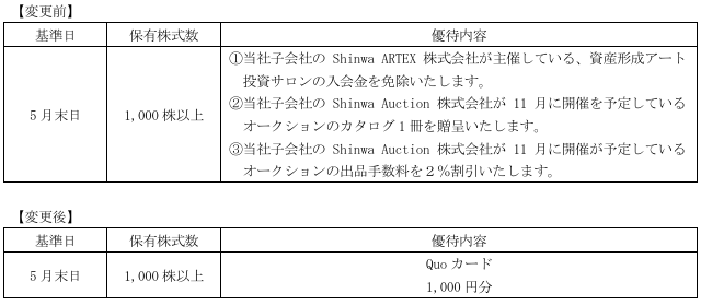 企業HP:株主優待制度の変更に関するお知らせ