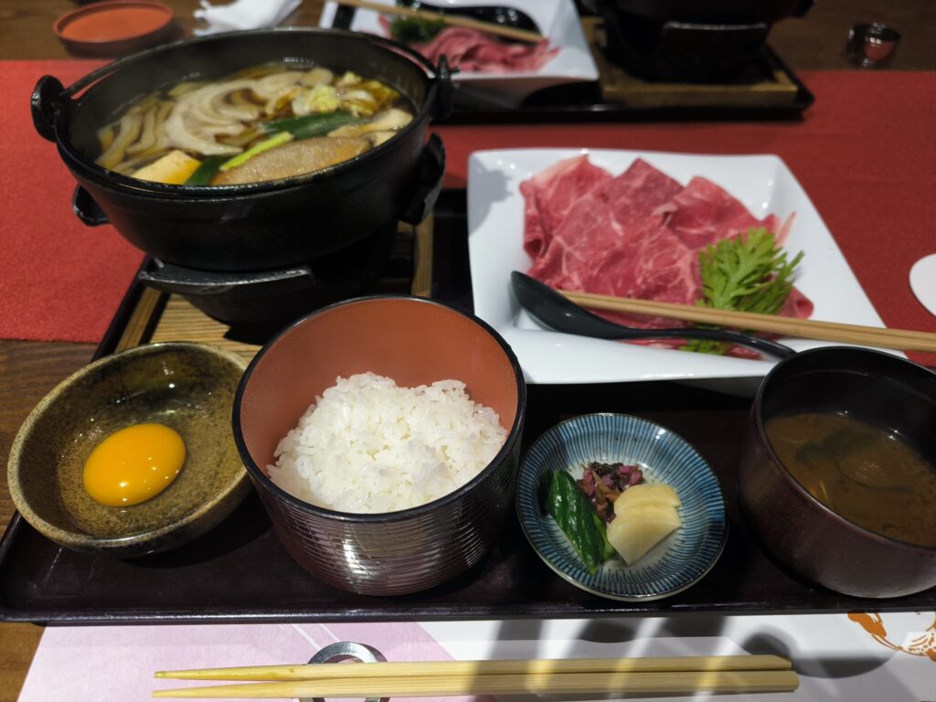 一番安いすきやきです。脂がしつこくなく、甘めの割り下が上品です。 家庭のすき焼きとは別物で、優待で食べられる満足感が大きいです。