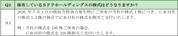でも今回の Q2 資料は明確に 3.2倍の株式交付 と書かれているので、 SFP100株 → クリレスHD320株だと考えれば、むしろプラス材料ではないでしょうか。。。