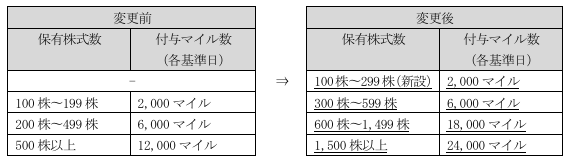| 保有株数 | 付与マイル |