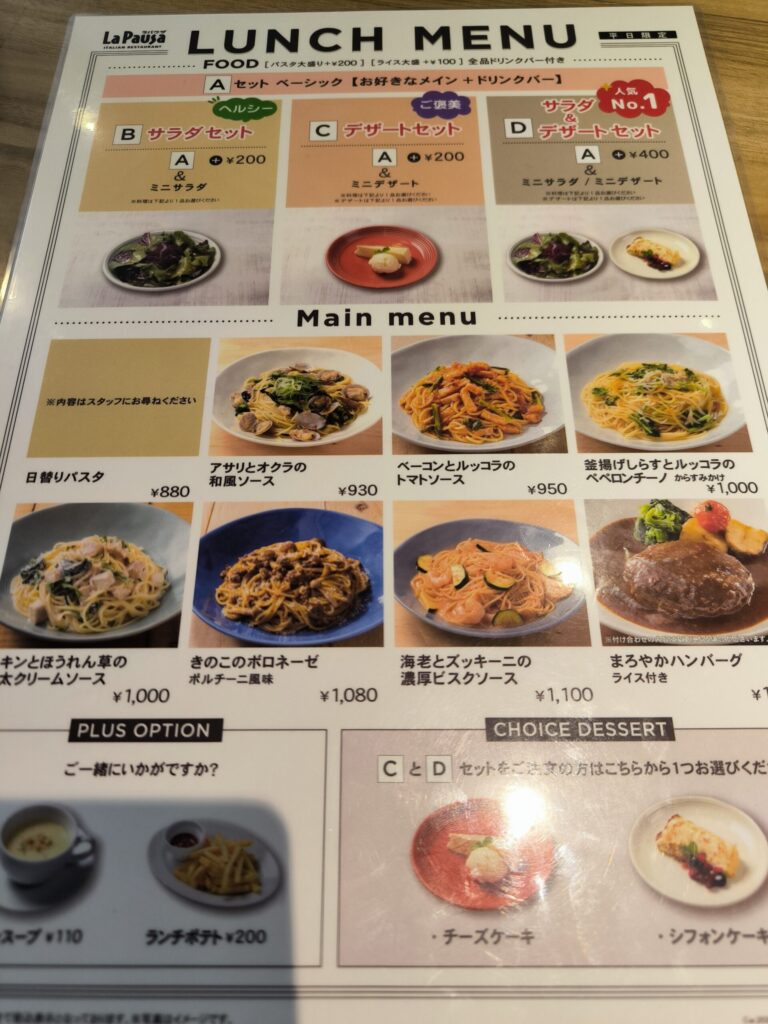 今回は、ラパウザ(La Pauza)で日替わりパスタ「鶏肉とおくらのパスタ(和風・にんにく風?)」とハンバーグ定食を注文。 実際の味、ボリューム、優待ポイントの使い勝手を、写真付きでレビューします。