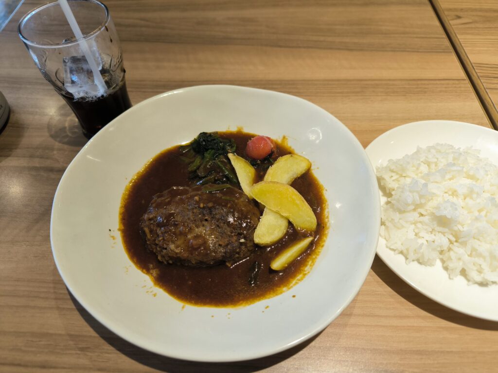 「ハンバーグ(ライス付き)」と「ドリンクセット」