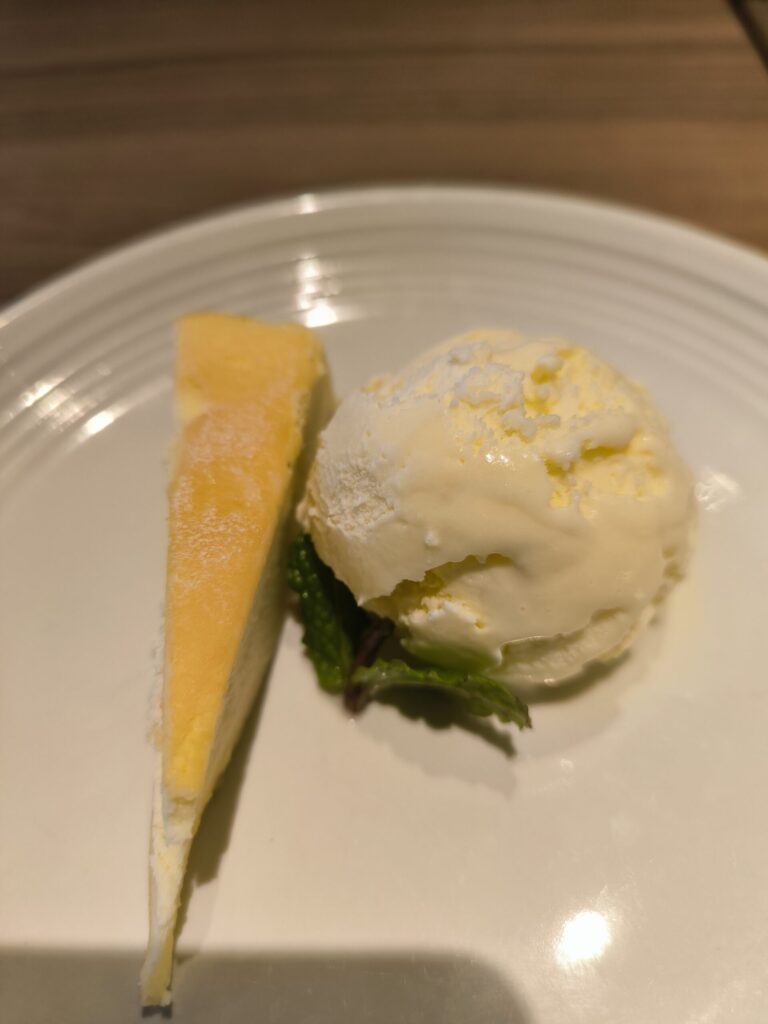 デザートはファミレスらしい標準的な仕上がりで、甘さは控えめ。食後にコーヒー+少し食べたくなるサイズにはちょうど良く、優待利用のランチとしては十分満足できる内容でした。