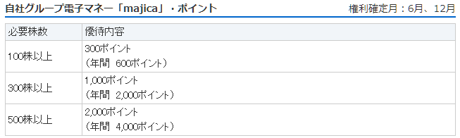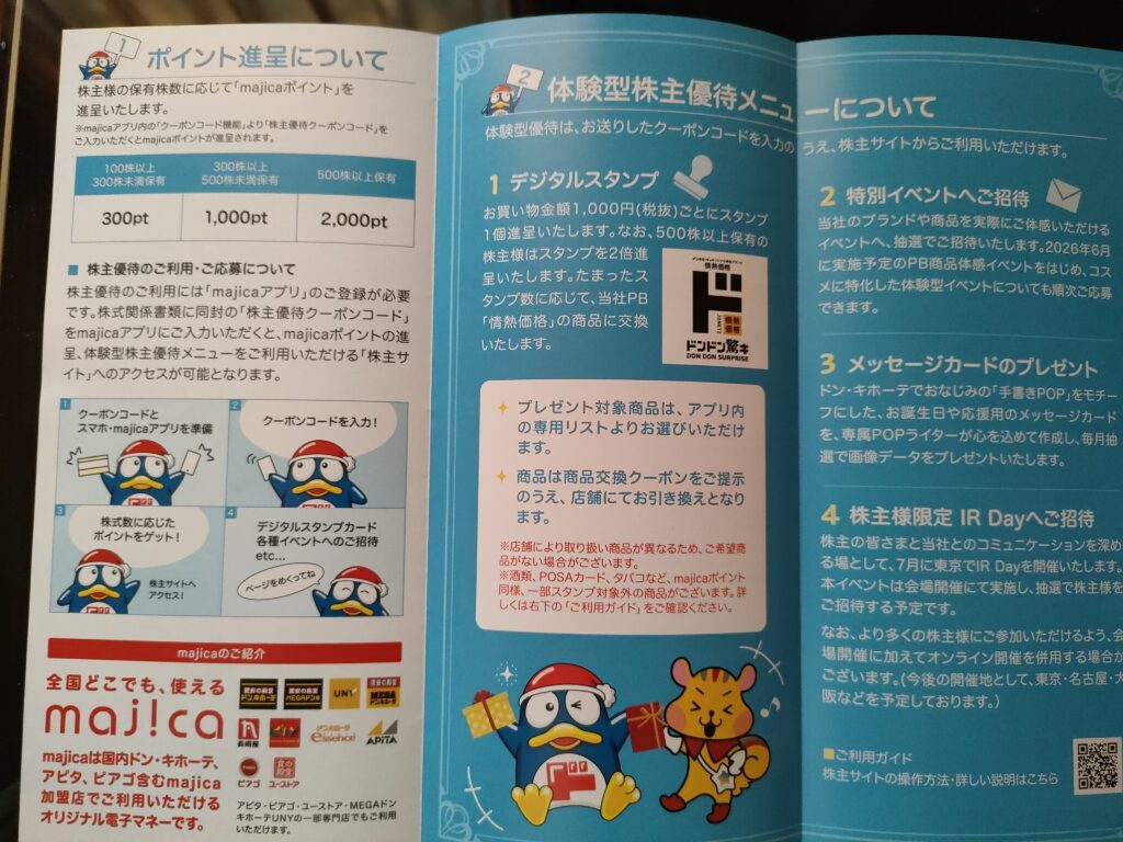 - 優待内容:株数に応じた「majica」ポイント(ドン・キホーテで使用可能)