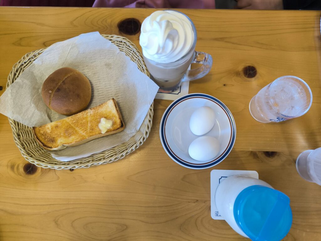 - モーニング(トースト+ゆでたまご、ローブ+ゆでたまご)×2 0円⇒モーニングはドリンク注文で無料