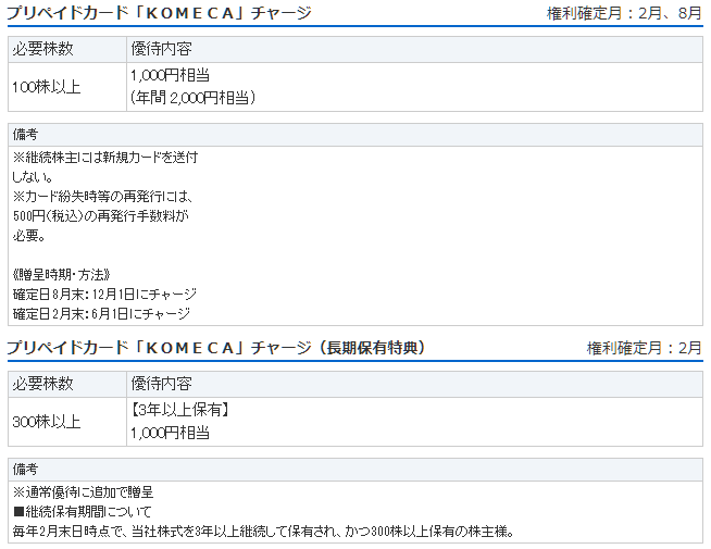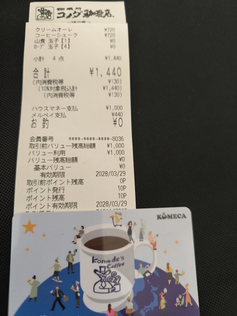 コメダの株主優待は、 電子マネー「KOMECA」に1,000円分がチャージされる仕組みです。