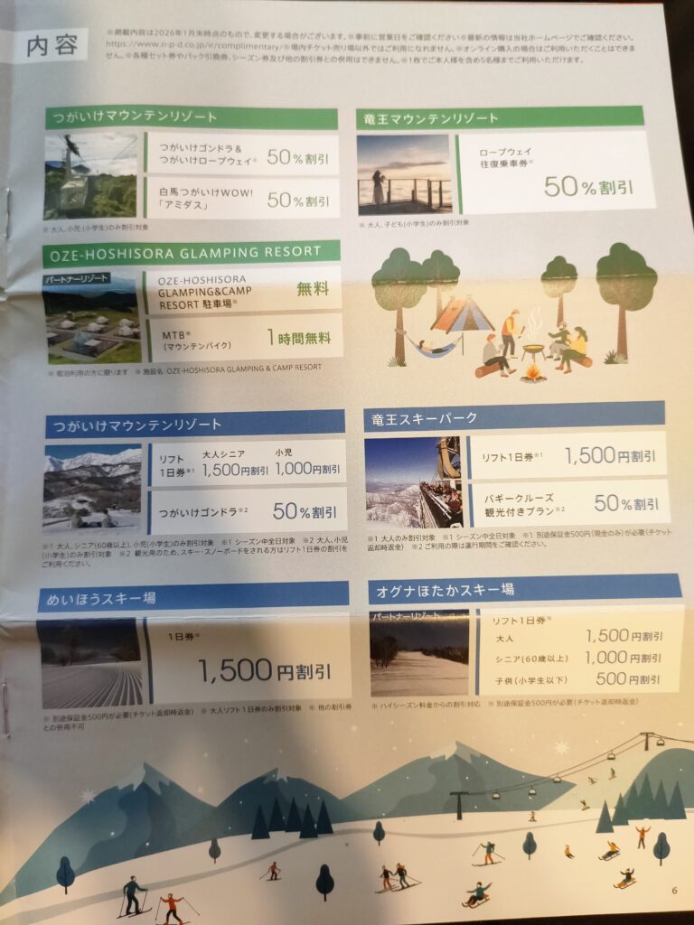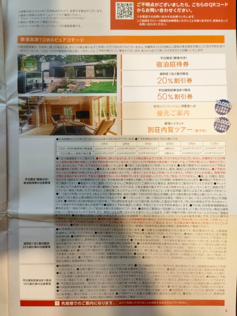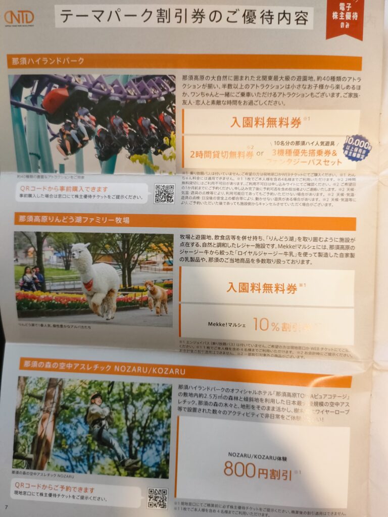 - 優待内容:グループ割引今年も無事に到着しました。到着日は3月10日。券など(保有株数と時期に応じて)