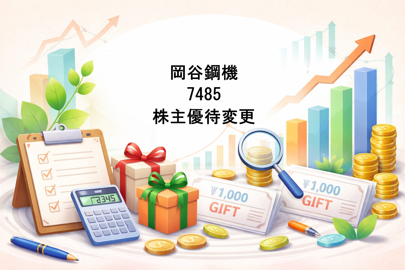 岡谷鋼機は2026年6月1日に1→2の株式分割を実施、株主優待の基準株数は分割前と同じ水準で据え置くとの事。
