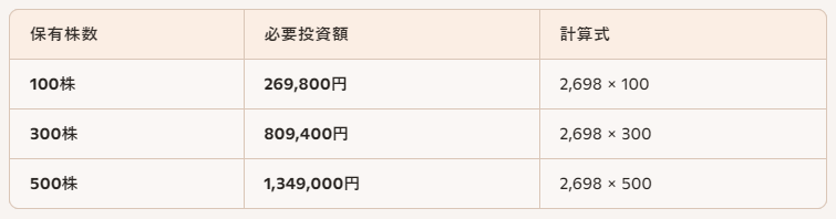 2026年3月31日の終値で1株2,698円の為、下記計算になります。