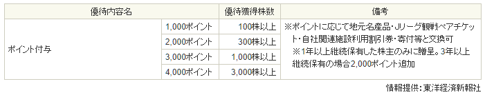 - 優待内容:保有数、期間に応じて