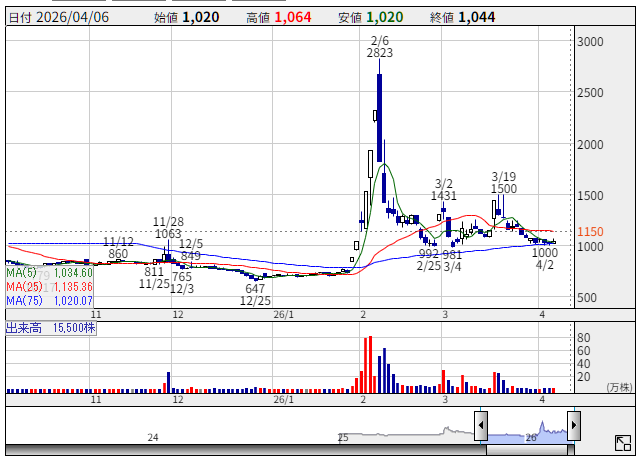 <日足チャート>…最近、株価が吹いた銘柄ですね。